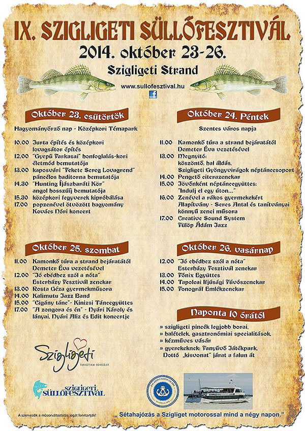 A város népszerűsítése érdekében Szentes számos rendezvényen, kiállításon is részt vesz. Ebben az évben az a megtiszteltetés érte városunkat, hogy a Szigligeten 2014. október 23-26 között megrendezésre kerülő több ezer látogatót vonzó Süllő fesztiválon részt vehetünk október 24-én. A szigligeti süllőfesztivál 2006 ősze óta kerül megrendelésre a Szigligeti Turisztikai Egyesület Szervezésében. Célja a szezon meghosszabbítása, valamint a helyi vállalkozások élénkítése. Felhőtlen szórakozást kínálnak, egy csodás őszi hétvégén.