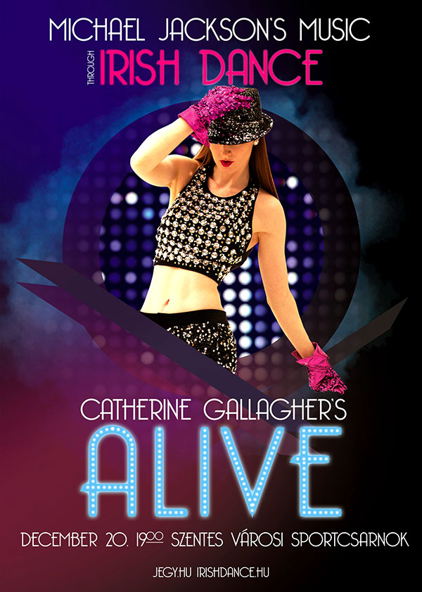 Előzmények, és a helyszín kiválasztása Az Írországban felnőtt sztepp tánc díva Catherine Gallagher, régóta képviseli bámulatos tudásával, színvonalas műsoraival az Ír sztepp kultúrát a világ színpadain. A bajnoki cím megszerzése után, kezdetben a világhírű Riverdance és a Lord of the Dance produkcióiban kamatoztatta tudását, Michael Flatley mellett. Később önálló karrierbe kezdett, amikor megalakította saját társulatát. A siker nem váratott sokáig magára, a világ minden táján sorra mutatta be újabbnál újabb produkcióit elképesztő sikerrel. A népszerűség titka lehet, hogy egyedüli módon a többi professzionális sztepp tánc társulatokkal ellentétben itt egy törékenynek tűnő viszont határozott női kéz építi fel az előadást. Catherine maga tervezi a fellépő ruhákat, találja ki a koreográfiát, és tervezi meg a showt. Így is történt a legújabb még soha nem látott műsor az Alive esetében is. Michael elképesztő zenéje találkozik az ír díva Catherine fergeteges tánc koreográfiájával. Innen származik a produkció szlogenje „His Music Her Dance” – Michael Jackson zenéje Catherine Gallagher tánca. A megtisztelő magyarországi premier előadás helyszínét Győr nyerte el, azonban itt nem áll meg a hazai turné, 2014 decemberéig csak itthon több, mint 20 városban lesz látható a show köztük dec. 20-án Szentesen. Michael Jackson zenéire Catherine Gallagher egy olyan erős, egész estés produkciót hoz el a nézőknek, mely garantáltan élmény dús kikapcsolódást nyújt. A műsor jellege miatt kortól és nemtől függetlenül mindenkinek ajánlott.