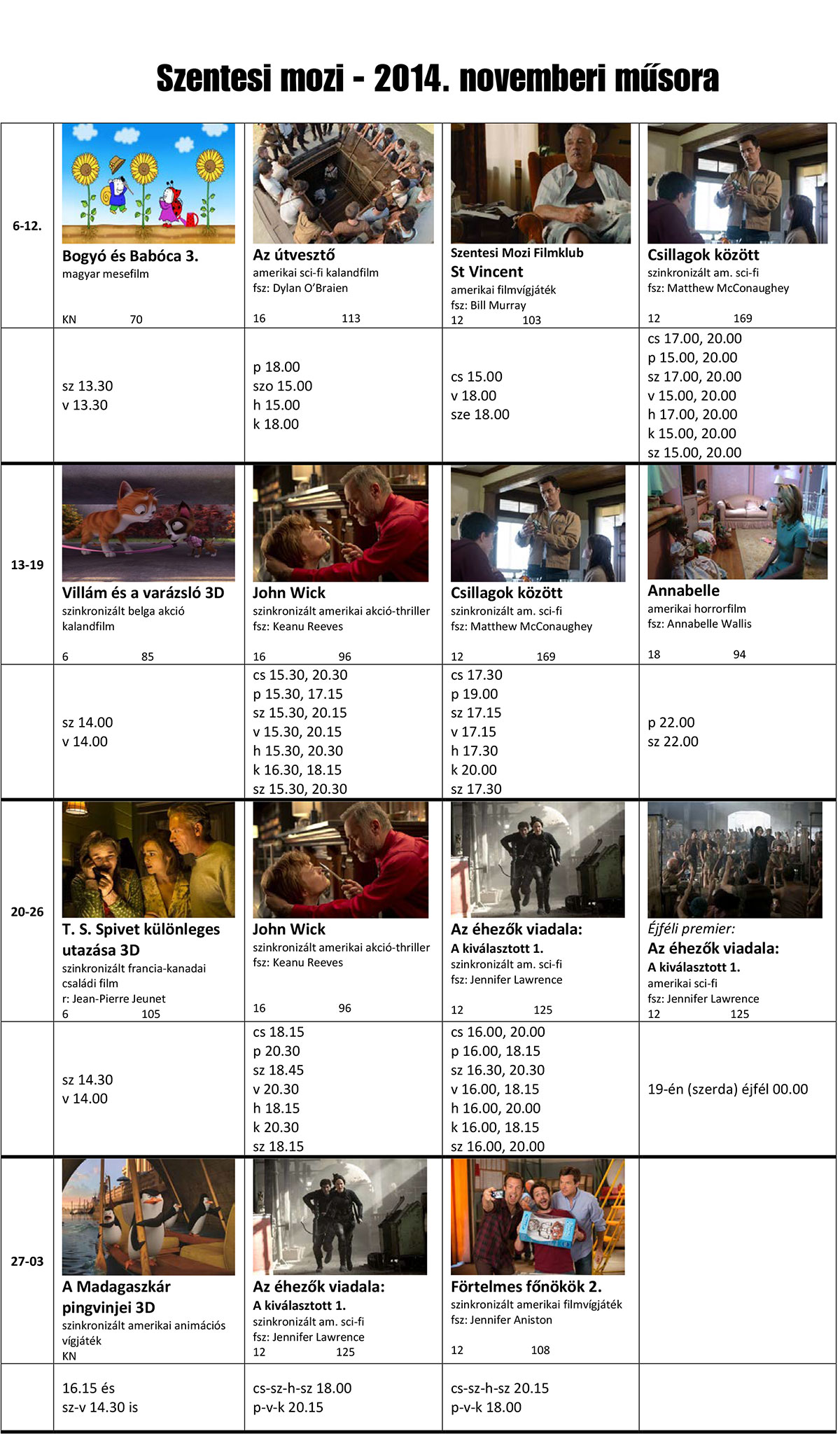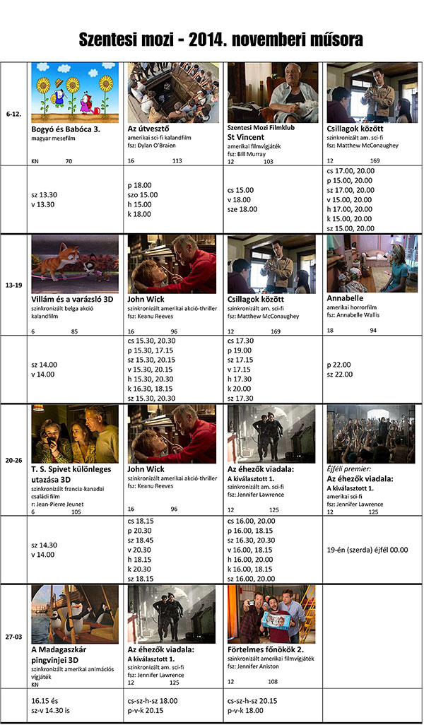 Bővebb információért keressék a Szentesi Mozi web- és Facebook-oldalát: www.szentesimozi.hu, www.facebook.com/szentesimozi