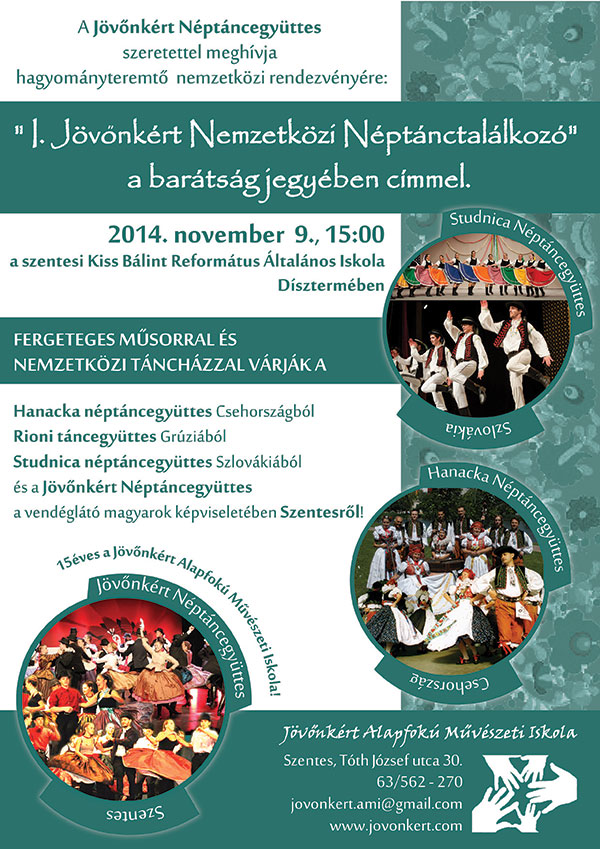 2014. november 9-én fergeteges műsorral és nemzetközi táncházzal várnak minden érdeklődőt a Kiss Bálint Református Általános Iskola dísztermében.