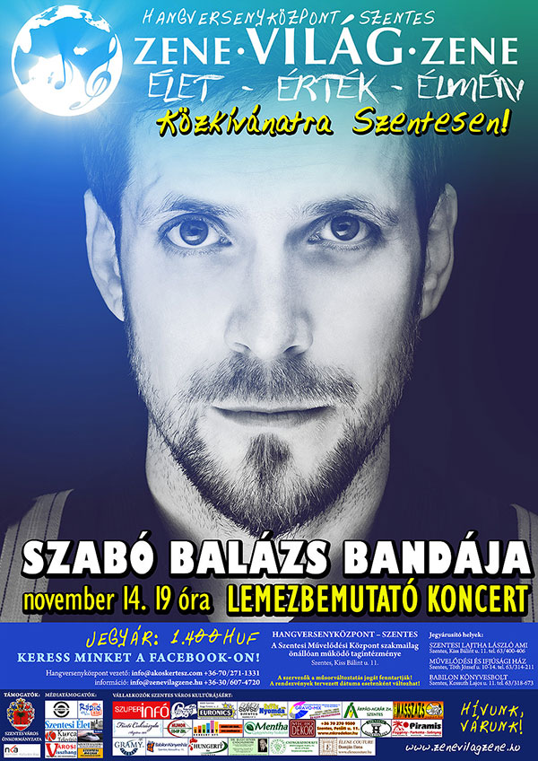Szabó Balázs Bandájának zenéje nehezen kategorizálható, de ha mégis muszáj, olyasmivel próbálkozhatunk, hogy „funky népzene”, „bluesos folk rock”, és „popos világzene”. A Zene - Világ - Zene koncertsorozat következő műsorában 2014. november 14-én (pénteken) 19.00 órai kezdettel minderről megbizonyosodhatunk a Hangversenyközpont nagytermében.