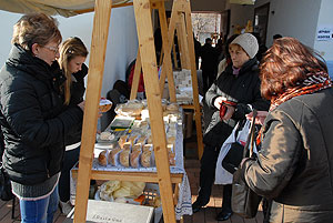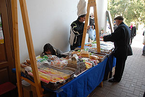A hűvösre forduló idő miatt a Művészetek Háza belső tereit is kihasználja a Garaboly Gasztro- és Kézműves piac. Igen érdekes kézműves portékák között igazi különlegességekre leltünk. Kissé bohókás ötlet a CÁPA ZOKNI, melyre a Művészetek Házának pincéjében akadtunk. Muzsik Sándornétól megtudtuk, hogy főként külföldiek rendelnek interneten tőle, így már kanadai, svéd, norvég de még ausztrál, lengyel és arab! lábakon is megtalálható alkotása.