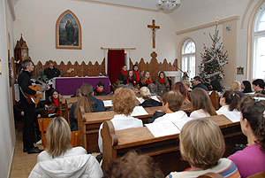 A kórházi karácsonyi műsorban közreműködtek a csongrádi Kisréti Otthon lakói, valamint Seres Antal és tanítványai, a Zenével a rákos gyermekekért alapítvány gitárosai, melyek között gyógyult és gyógyulófélben lévő gyermekek pengették a húrokat.