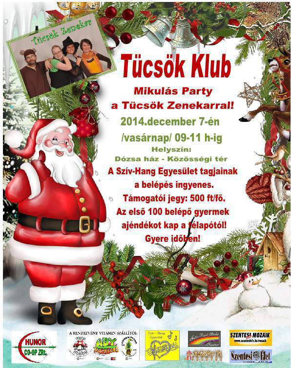 2014. december 7-én délelőtt 9-11 között Mikulás Party-t rendeznek a Tücsök Klubban, ahol az első 100 gyermek ajándékot kap!