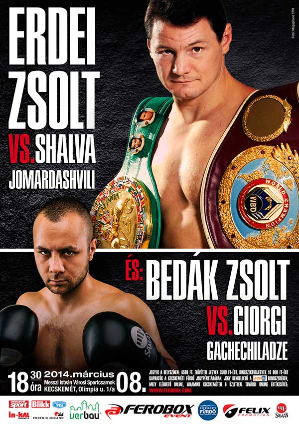 A szentesi székhelyű Ferobox Event profi boksz istálló soron következő eseményére már nem kell sokat várni. A szervezők talán nőnapi ajándéknak szánták a Kecskeméten, 2014. március 8.-án megrendezésre kerülő gálát. A rendezvény két mérkőzésén WBO Európa bajnoki címmérkőzéseken lép ringbe Erdei "Madár" Zsolt, és Bedák Zsolt. A Ferobox Event több versenyzője is ringbe száll, többek között Kovács "Vipera" Attila, és a WBO Interkontinentális bajnok Kelemen Balázs is. Kilátásban van a szentesen hatalmas ütközetet hozó Bozai Gyula vs Faur Csaba találkozó visszavágója is. A rendezvény iránti érdeklődést jelzi, hogy a jegyárusítás nyitónapján elfogyott az összes belépőjegy! Viszont azoknak sem kell elkeseredni akik lemaradtak a jegypénztáraknál, hiszen az est két főmérkőzését élőben közvetíti az M1 tévécsatorna, és a Kossuth Rádió is. A gála ismétlése a többi mérkőzésekkel együtt a Sport1 tévécsatornán lesz látható.