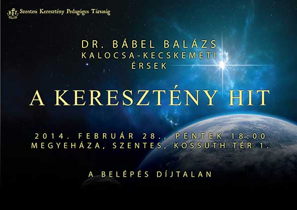 2014. február 28-án hallhatjuk Dr. Bábel Balázs Kalocsa-Kecskeméti érsek előadást a Keresztény Hit-ről.