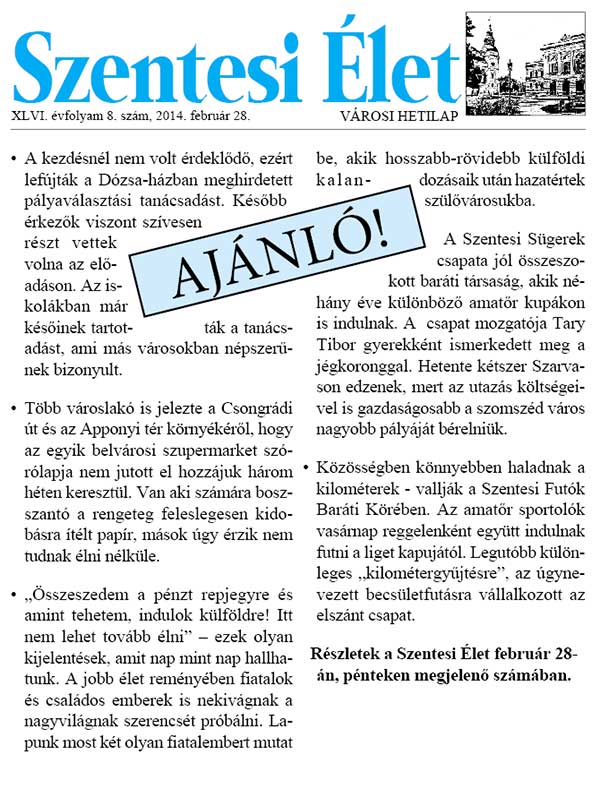 a Szentesi Élet február 28-án, pénteken megjelenő számában.