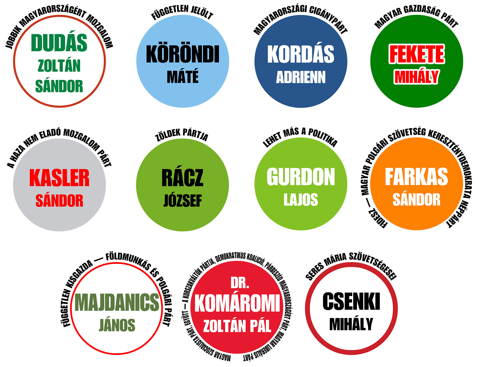 Az Országgyűlési Egyéni Választókerület Választási Bizottság a jelöltek szavazólapon szereplő sorrendjét az alábbiak szerint állapítja meg: