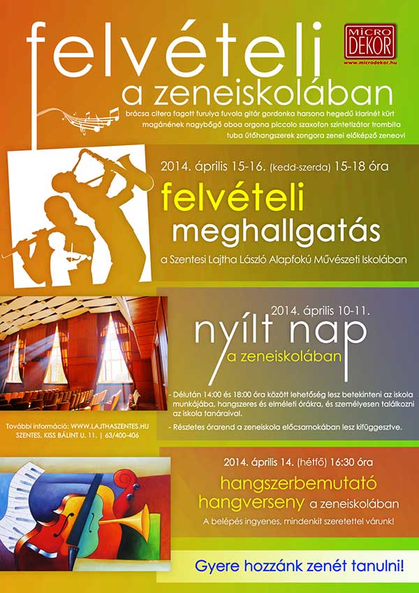 15-16-án, 15-18 óra között hangszeres és magánének tanszakokra.