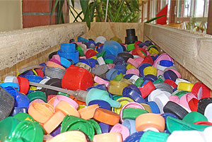 Gyűlnek a kupakok Már üríteni is kellett a kupakgyűjtő ládát!