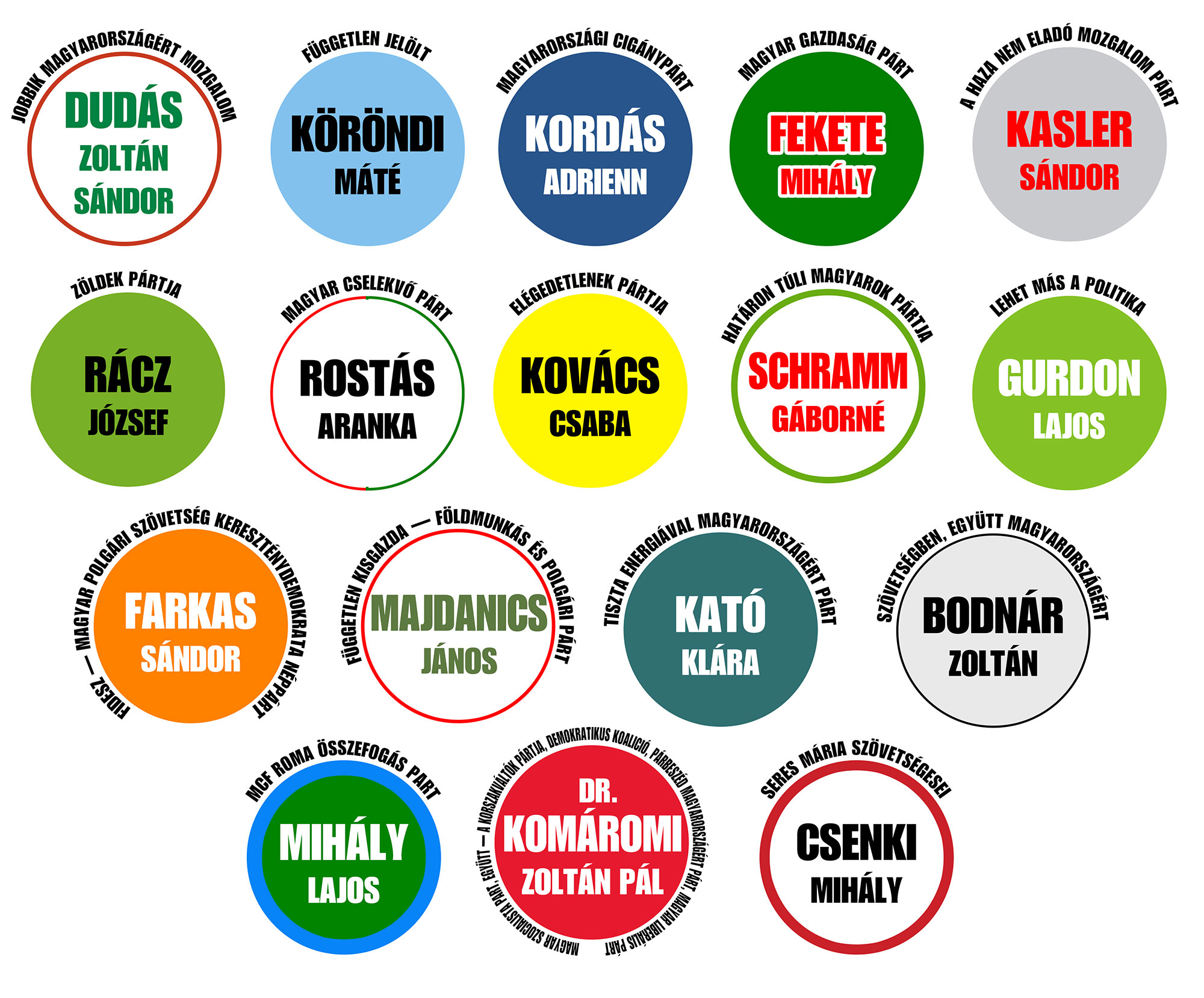 Az Országgyűlési Egyéni Választókerület Választási Bizottság a jelöltek szavazólapon szereplő sorrendjét az alábbiak szerint állapítja meg: