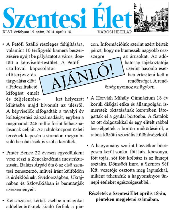 Részletek a Szentesi Élet április 18-án, pénteken megjelenő számában.