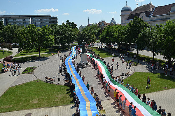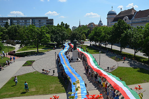 A Nemzeti Összetartozás Napján, Szentesen. 250 méteres zászlók a Kossuth téren