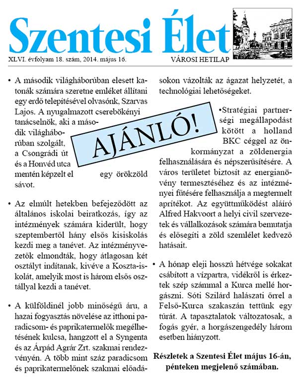 Részletek a Szentesi Élet május 16-án, pénteken megjelenő számában.