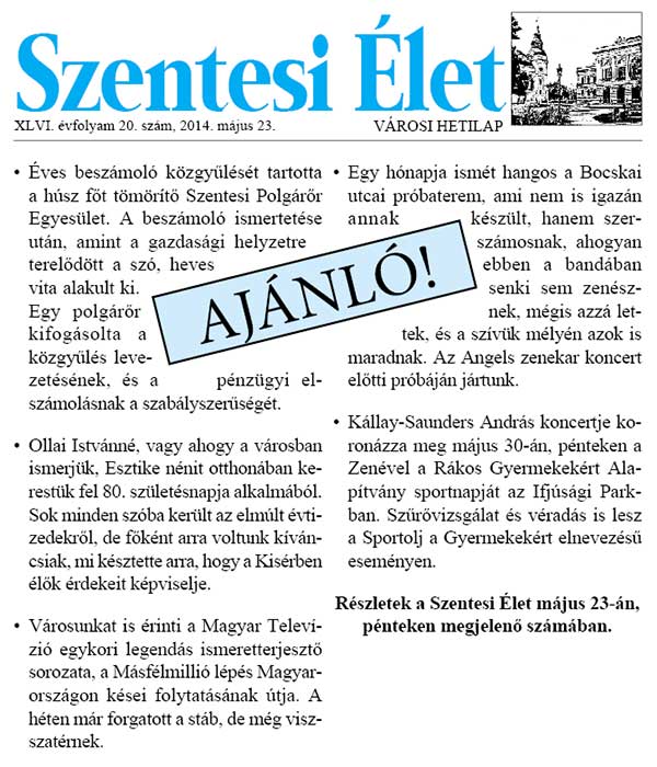 Részletek a Szentesi Élet május 23-án, pénteken megjelenő számában.