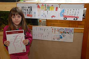 Réka nemcsak nagyon szeret, hanem nagyon tud is rajzolni (tudtuk meg az óvó néniktől) , melyet a második hely is bizonyít. Míg ebben a korban a gyerekeknek egy-két kedvenc figurája van melyet szeret rajzolni, addig Réka mindent nagyon szeret, és tud, papírra vetni. A rajsorozatának középpontjában egy állatkerti kirándulás áll, mely régi álma. És, hogy ezt hogyan lehet biztonságosan megtenni, ezt ábrázolta a beküldött öt rajz.