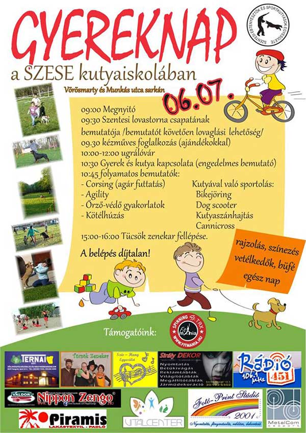 2014. június 7-én gyermeknapi rendezvényt szerveznek a SZESE kutyaiskolában. Minden érdeklődőt szeretettel várnak.