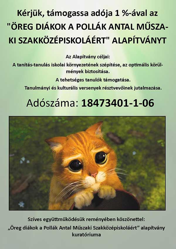 Kérjük, támogassa adója 1 %-ával az "ÖREG DIÁKOK A POLLÁK ANTAL MŰSZAKI SZAKKÖZÉPISKOLÁÉRT" ALAPÍTVÁNYT!