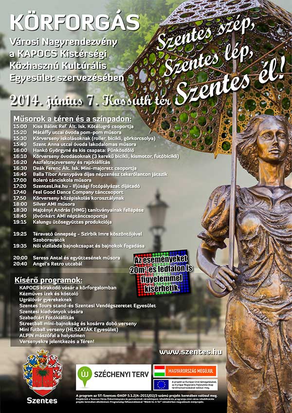 Értesítjük a tisztelt lakosságot, hogy városi rendezvények miatt az alábbi útszakaszokon teljes útlezárás lesz: 2014. június 7-én 12:00 – 23:00 óra között: Kossuth L. utca Posta előtti zebrától, Polgármesteri Hivatal előtti zebráig, Ady E. utca Lipóti Pékségtől, Petőfi S. utca SzVSz Nyomdáig.