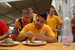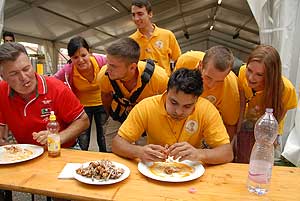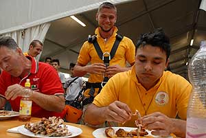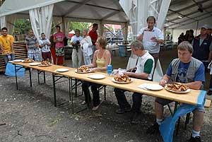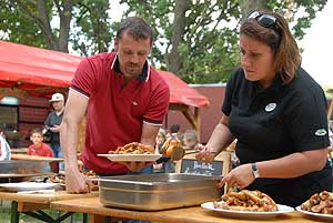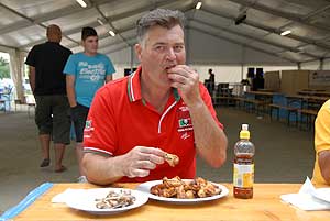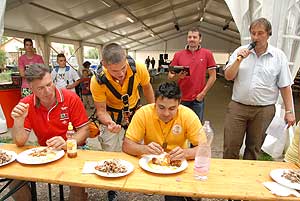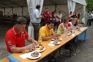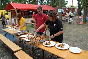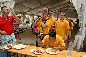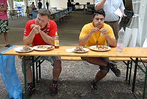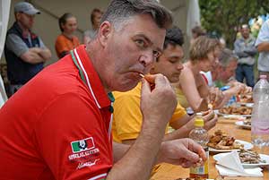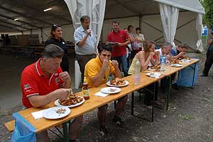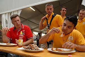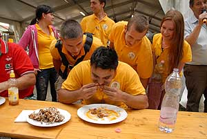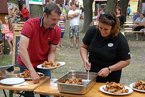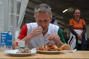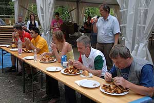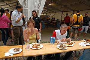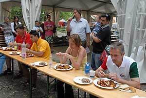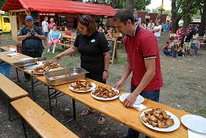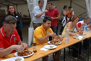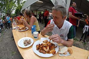 A címvédő Laczkó Péter az utolsó percekben már úgy próbált gyorsítani a tempón, hogy előbb leszedte a húst a csontokról, és utána evett. Így is mindössze két-három falattal nyert a remekül hajrázó, kalandparkos alkalmazottal, Őri Józseffel szemben, és vihette haza immáron második alkalommal az első helyet.