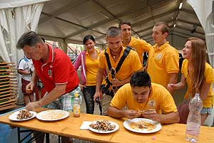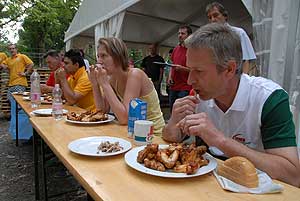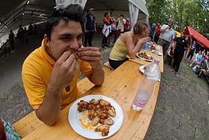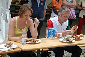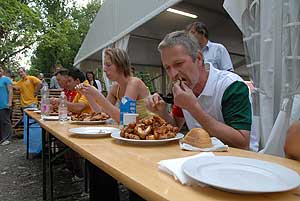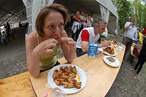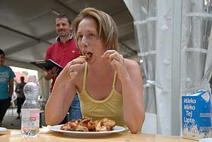 Petőné Kiss Henrietta, aki a versenyben negyedik lett, a „sportág" történetének első női résztvevője becsületesen helyt állt, de nem tudta a dobogóról leszorítani az örök "második" Hungerites-dolgozót, Bihari Istvánt, aki elmondta a falatozás előtt, hogy "azért indul rendszeresen, mert szeret enni, és különösen kedveli a csirkeszárnyat".