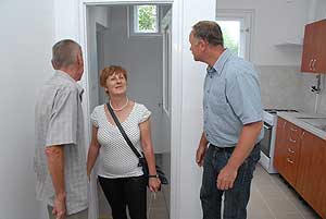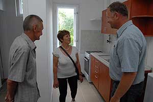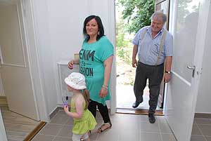 Kunszabó Antal és Rekettyés Enikő nagyon örült az új, másfél szobás lakásnak. A fiatal pár két gyermeket nevel, mindketten dolgoznak, a férfi a Hungeritnél, a nő egy kertészetben. Az összkomfortos, központi fűtéssel ellátott lakások bérleti díja 12 ezer forint körüli összeg havonta.