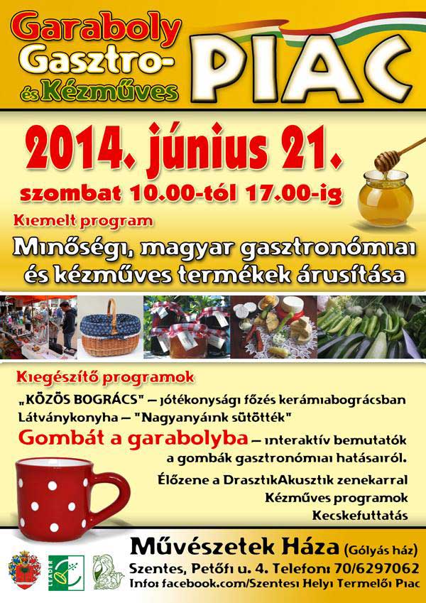 Harmadik alkalommal örülhetünk a kézműves termékek seregszemléjének a Művészetek Háza udvarán 2014. június 21-én. Nézze meg, vásároljon a minőségi, magyar gasztronómiai és kézműves termékek piacán a Garabolyon! A hangulatról ezen a napon a DrasztikAkusztik gondoskodik!