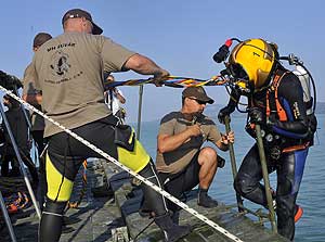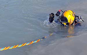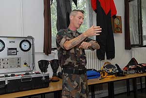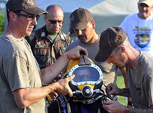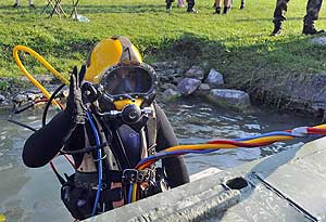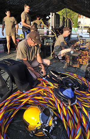 Az első váltás 1300 méter után történt. A hatvan kilós nehézbúvár-ruhából és a tizenhat kilós búvársisaktól megszabadulva Bagi László főhadnagy elmondta: mindössze 60-80 centiméter volt a látótávolság. „Először a légzésre koncentrálj, aztán gondolkodj, majd cselekedj” – árulta el az MH 37. II. Rákóczi Ferenc Műszaki Ezred búvárkiképző részleg részlegvezetője a búvárok fontos hármas szabályát.