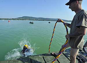 Sok híradásban úgy jelent meg, hogy átsétálták a Balatont a búvárok, de a vízben haladva és a naszád adta tempót felvéve szinte futottak a katonák a víz alatt - tudtuk meg Nagyné László Anikó őrmestertől.