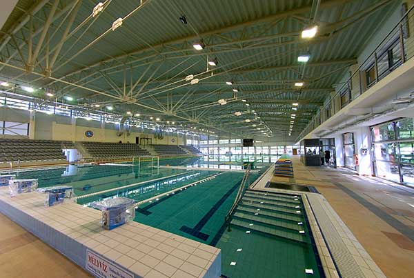 A fedett uszodában közel 700-an foglalhatnak helyt a lelátókon. A szövetségek már hitelesítették a medencét mind a vízilabda, mind az úszósportok számára. Komoly technikai kiszolgálóegységgel rendelkezik a fedett rész, így nemzetközi mérkőzések tv közvetítésére is alkalmas.