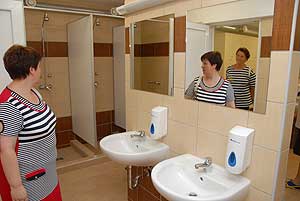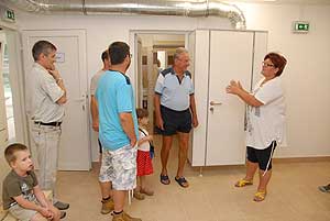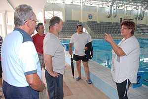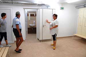 A vendégeket ezután az igazgató asszony végigkalauzolta az új öltözőkben és a fedett uszodában. A működésről is fontos tudnivalókat osztott meg, valamint ismertette a további pályázatok által biztosított lehetőségeket.