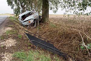 Egy személy súlyos életveszélyesen sérült meg, amikor autójával fának csapódott Szentes határában. Szegvár felé tartott a Wartburg személygépkocsi, amikor egy jobbra ívelő kanyarban átsodródott a szemközti sávba, majd árokba hajtott és fának csapódott. Az autót vezető férfit súlyos sérülésekkel szállították a szentesi kórházba. Információink szerint a férfinek nem volt bekapcsolva a biztonsági öve, ezért úgy előrebukott, hogy a kormányt is kiütötte a helyéről.