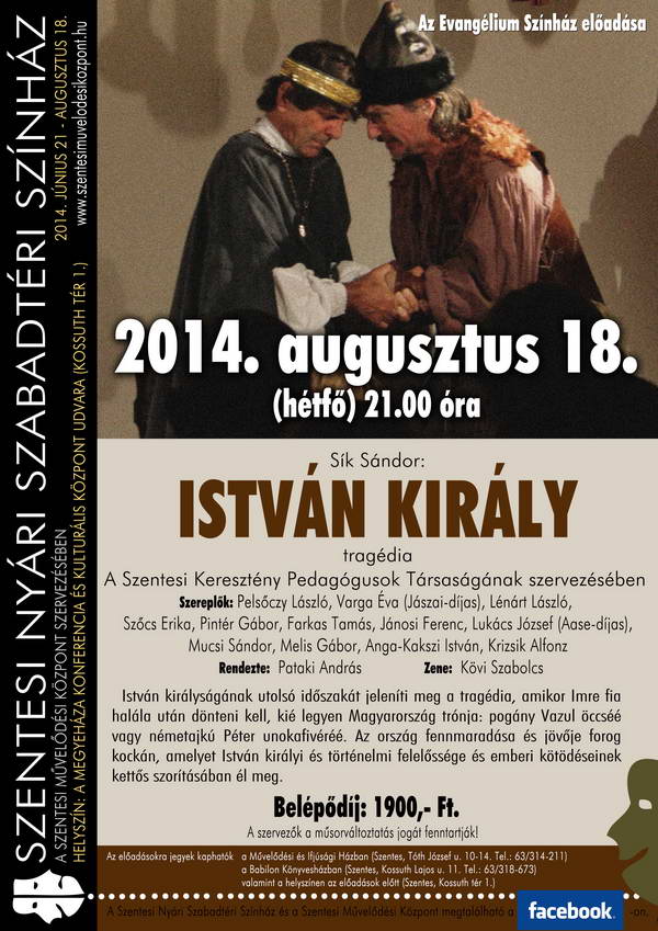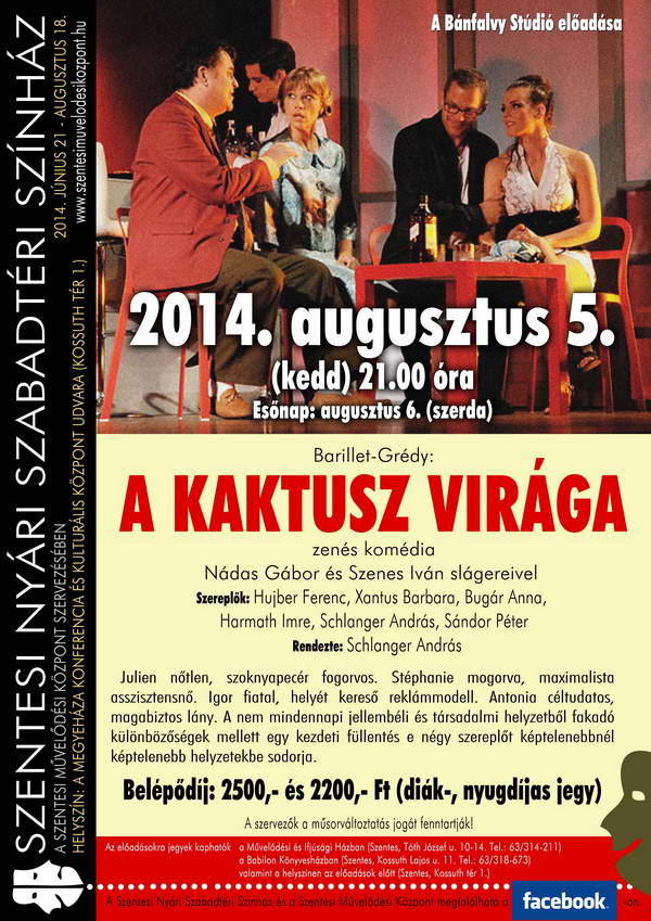 Most indul be igazán a Szentesi Nyári Színház programja és eddig hatalmas sikert aratott a közönség körében. Mi sem bizonyítja, hogy a hétvégén bemutatásra kerülő Dumaszínházra a jegyeket napok alatt elkapkodták, így garantált a teltház! Íme a hátralévő koncertek, színházi darabok, slágerestek plakátja, melyből mindenki tud választani a maga ízlésének valót, egy könnyed nyári szórakozásnak!