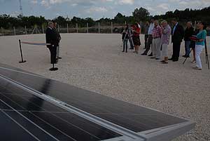 A Városi Szolgáltató Kft. tavaly adott be pályázatot két nagyteljesítményű naperőmű építésére, azonban nem kaptak értesítést a pályázat eredményéről. A cég ezért úgy döntött, hogy a két pályázat önerejéből megépíti saját költségén az egyik napelem parkot a nyár kezdetére. Amennyiben mégis nyer a beadott pályázat, akkor megépítik a másikat is a kertvárosi fűtőmű tetejére - mondta Döbrőssy Iván ügyvezető a napelem park hivatalos avatásán.