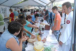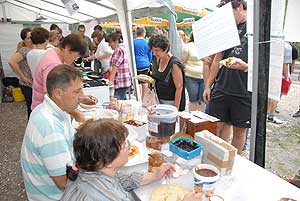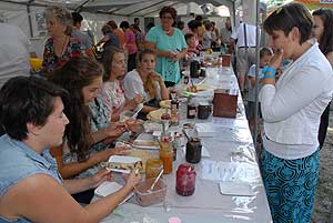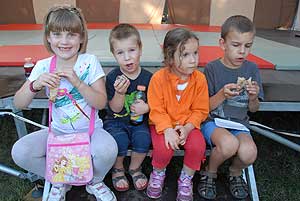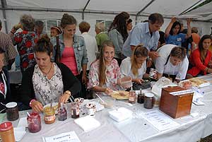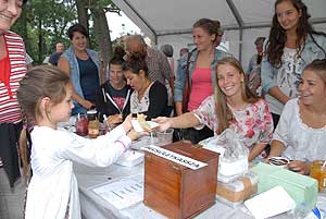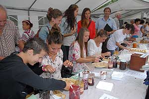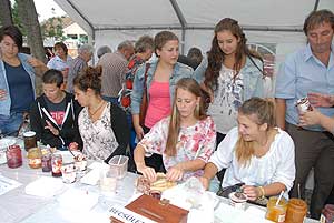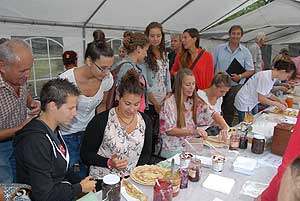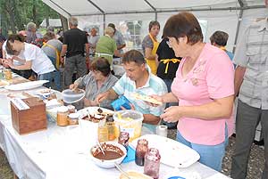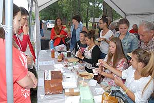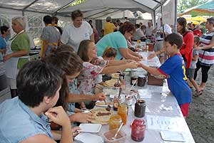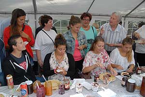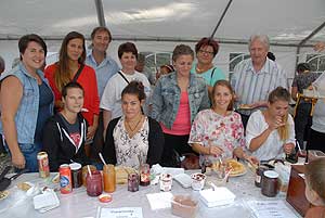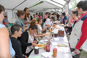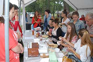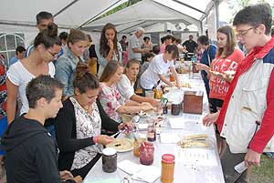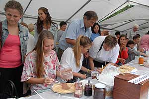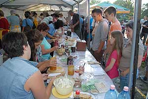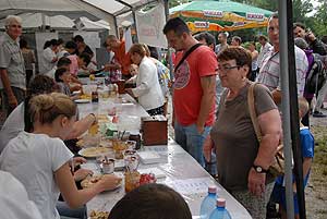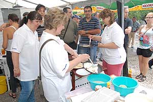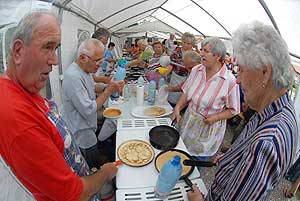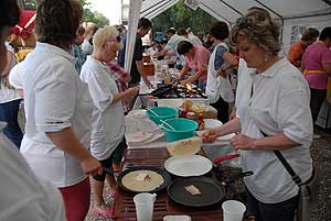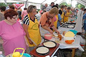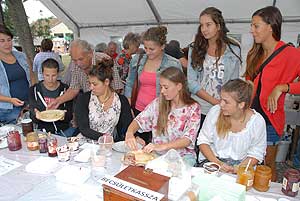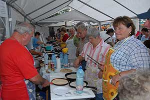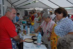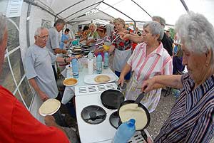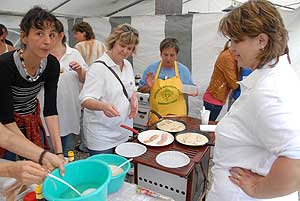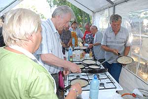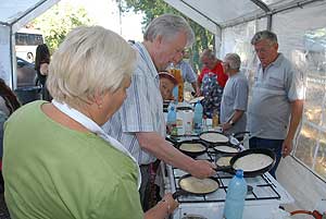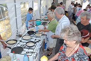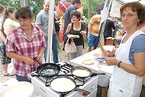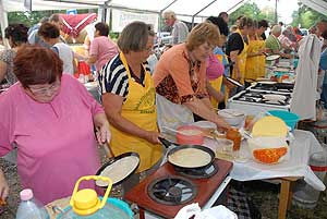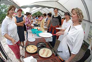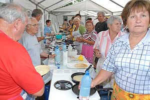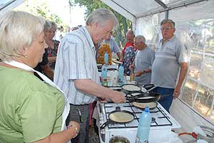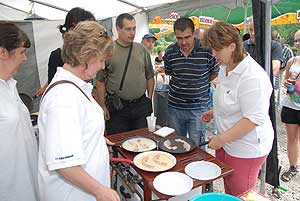 A megnyitó után SÜTŐKRE FEL! - hallatszott a Király István Kertbarátkör tagjainak csatakiáltása, és amint kigyúltak a tűzhelyek "rózsái" már ontották is a palacsintákat a kenőbrigádnak!