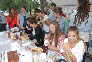 Erős kezdetet adott a derekegyházi palacsintafesztiválnak Szentes városa. Természetesen egy gasztronómiai fesztivál életében az első nap mindig erős vendégszájban így fel kellett készülni a rohamra. Szentes városa állta a "sarat", kente, töltötte a palacsintákat.