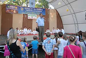 Este 8 órakor lépett a színpadra a „Jövőnkért” Alapfokú Művészeti Iskola Jövőnkért Néptáncegyüttese. A 15 éve megalakult Jövőnkért Alapfokú Művészeti Iskola 10. éve működő néptáncegyüttesének műsorát élvezhetik hamarosan. Az iskola három művészeti ágban fejti ki tevékenységét. Egyik fő céljuk a hagyományőrzés; ennek részeként működik a néptáncegyüttes. A sok ügyes néptáncos kitartó munkája eredményeképp sok szép díjjal büszkélkedhet. Többek között három évben egymás után megszerezte a régió Arany minősítését. Művészeti vezető és koreográfus: Bagi Ferenc néptáncpedagógus, koreográfus, MTF mentortanár Igazgató: Keller Jánosné