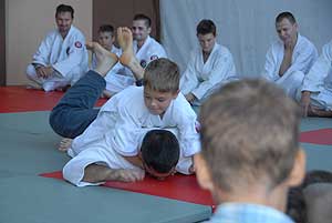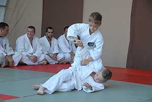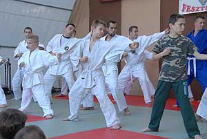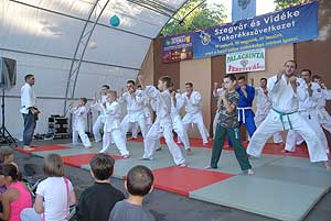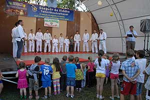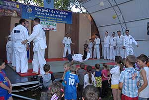 Az esti bemutatókat a Szentesi Ju Jitsu Klub kezdte (ejtsd: dzsudzsicu). A klub 2014 márciusában alakult, tehát mindössze három hónapos múltra tekinthet vissza. Ezt a japán gyökerekkel bíró harcművészetet a szamurájok fejlesztették ki a középkori, feudális Japán csataterein, olyan céllal, hogy az ellenséget akkor is ártalmatlanná tudják tenni, ha a fegyverüket elveszítették. Azon kevés harcművészetek egyike, amely komplex – tehát az ütések és rúgások mellett számtalan technikai elemet tartalmaz: dobásokat és az ehhez kapcsolódó eséseket, fojtásokat, feszítéseket, fegyveres harcot, földreviteleket és földharcot is. Kicsit talán úgy kell elképzelni, mintha egybe lenne gyúrva a judo, a birkózás és a karate.