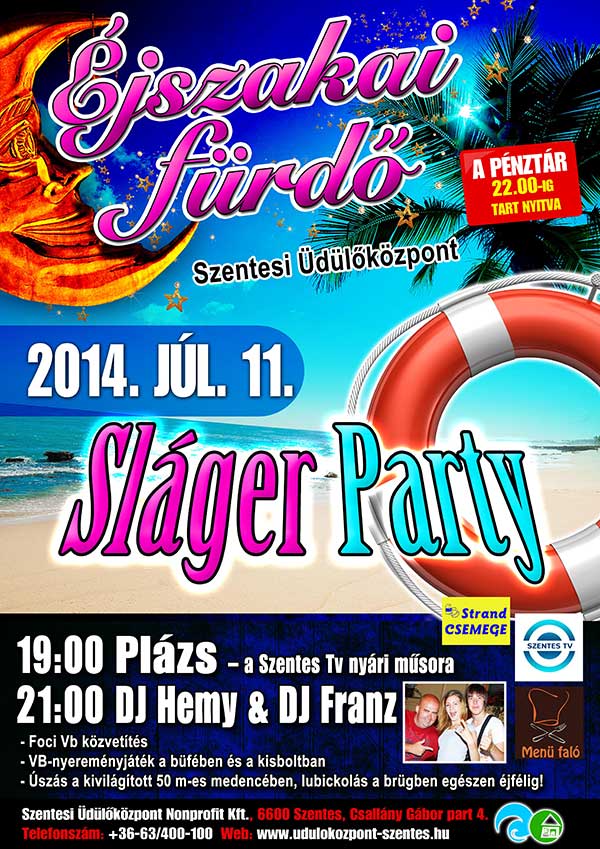 2014. július 11-én folytatódik az éjszakai fürdőzés a strandon. Erre a napra (estére) már jó időt mondanak az időjósok, így melegen ajánljuk a könnyed nyári szórakozásnak az éjszakai fürdőzést.