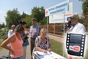 A szentesi kórház lett az első, amely áldozatául esik egy tavaly elfogadott, az uniós beruházások szigorú ellenőrzését előíró kormányhatározatnak. Egy tavaly november végén elfogadott kormányhatározat értelmében amennyiben egy uniós beruházási program 2013 szeptember 30-ig nem ér el 10 százalékos pénzügyi előrehaladást, illetve idén január közepéig nem tud számot adni sikeres közbeszerzési eljárásról, úgy akár hatályon kívül is helyezhető az adott beruházásról kötött támogatási szerződés. A Magyarország Alaptörvényében rögzített jogaink érvényesítése érdekében alulírottak elvárjuk Magyarország Kormányától, hogy még az őszi választások előtt Szentes Város Önkormányzata Képviselő-testületéhez eljuttatott nyilatkozatában - jóváteendő a kormányzati intézmények mulasztását -, adjon nekünk állampolgároknak nyilvános írásos garanciát arra, hogy a 2014-2020-as ciklus első induló új egészségügyi beruházása a dr. Bugyi István Kórház rekonstrukciója lesz, benne a most leállított műtéti tömb eredeti szakmai tartalmú megvalósításával - olvasta fel Móra József önkormányzati képviselő az épülendő műtéti tömb táblája előtt ezen sorokat, mely az aláírási íven szerepel. Katt a képre! Szentes, 2014. 08. 14.
