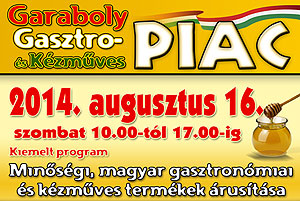 Minden hónap közepén rendezik meg a Művészetek Háza udvarán és annak környékén a Garaboly Gasztro- és Kézműves Piacot. Íme az augusztus 16-ai rendezvény plakátja, melyből kiderül, hogy ismét fantasztikus gaszto-élménnyel készülnek a szervezők!