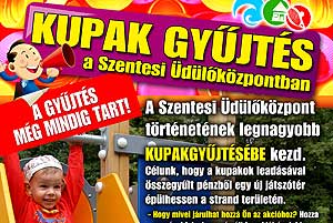 A Szentesi Üdülőközpont történetének legnagyobb KUPAKGYŰJTÉSÉBE kezdett. Céljuk, hogy a kupakok leadásával összegyűlt pénzből egy új játszótér épülhessen a strand területén. Hogy mivel járulhat hozzá Ön az akcióhoz? Hozza magával feleslegessé vált kupakját és dobja a dobozba! Meddig tart az akció? Amíg össze nem gyűlik a pénz egy igényes játszótérre. Honnan tudhatom, hogy a pénz biztosan jó helyre kerül? Az összegyűlt pénzt külön bankszámlán helyezik el és folyamatosan tájékoztatják a Vendégeiket az akció alakulásáról!