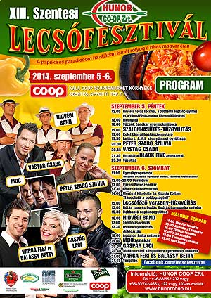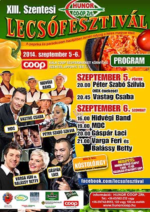 A XIII. Szentesi Lecsófesztivál két napján 6 sztárnak, nyolc zenekarnak és több egyéni fellépőnek örülhetünk. Már most biztosra vehetjük, hogy itt lesz Péter Szabó Szilvia és Vastag Csaba. Ők a pénteki napon szórakoztatnak majd minket.