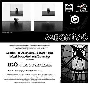 A Szentesi Művelődési Központ és a Szentesi Fotókör tisztelettel meghívja Önt és kedves családját 2014. szeptember 1-én, hétfőn 18.00 órára a Művelődési és Ifjúsági Házba (Szentes Tóth J. u. 10-14.) a Łódzi Fotóművészek Társasága (Łódzkie Towarzystwo Fotograficzne Lengyelország) IDŐ című fotókiállítására. A kiállítást megnyitja: Szirbik Imre Szentes város polgármestere