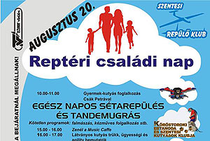 2014. augusztus 20-án egész napos sétarepüléssel és tandemugrással várják az érdeklődőket a szentesi repülőtérre, ahol a Szentesi Repülőklub szervezésében Reptéri Családi Napot szerveznek.