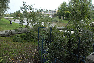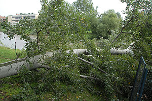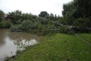 Szentesen is kidőlt egy nyárfa, amely a Kurca folyóba borult. A hivatalos híradásban úgy szerepel, hogy az egységek kishajóval közelítették meg a helyszínt, de csak a helyszínre vonulásukkor vitték magukkal a hajót, de a mi talpraesett tűzoltóink megoldották annak használata nélkül a fadarabolást. A harminc méter magasságú fatörzset két láncfűrésszel darabolták fel.