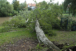 Folyamatosan csökkennek az esőzésekkel kapcsolatos bejelentések Csongrád megyében. A vízszivattyúzások után szerdán a kidőlt fák adtak munkát a tűzoltóknak. Az eső áztatta, fellazult talajban több nagyméretű, egészséges fa fordult ki gyökerestől a földből.