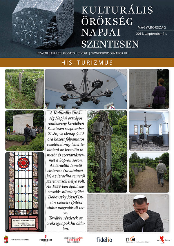 A Kulturális Örökség Napjai országos rendezvény keretében Szentesen szeptember 21-én, vasárnap 9-12 óra között folyamatos vezetéssel meg lehet tekinteni az izraelita temetőt és szertartástermet a Sopron soron. Az izraelita temető cinterme (ravatalozója) az izraelita temetői szertartások helye volt. Az 1929-ben épült szecessziós stílusú épület Dobovszky József István szentesi építész utolsó megvalósult terve. További részletek a www.oroksegnapok.hu oldalon.