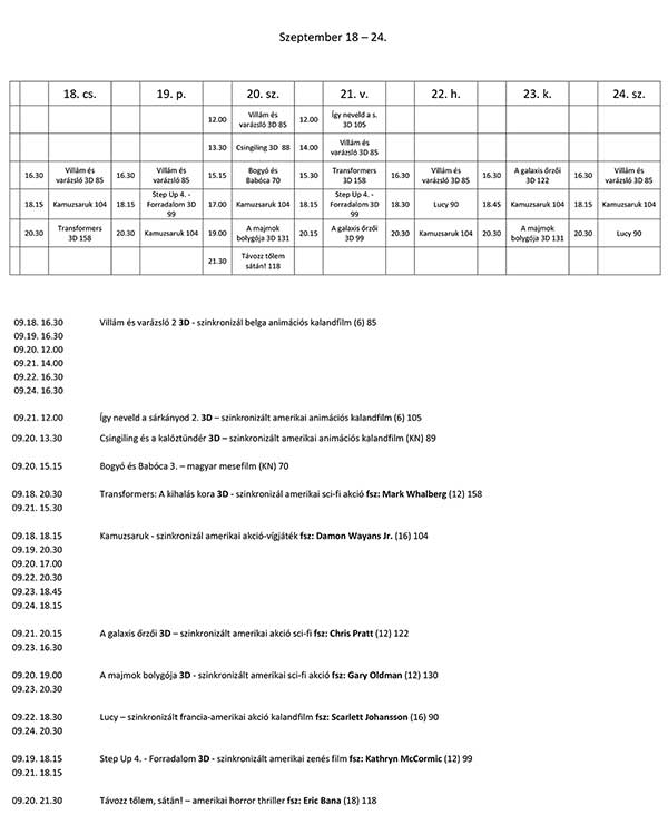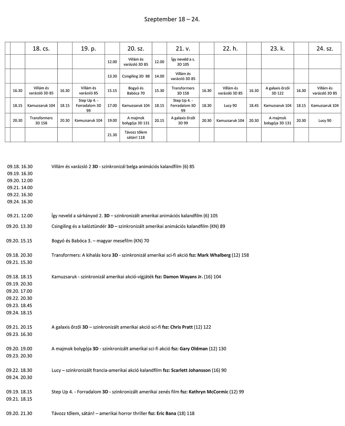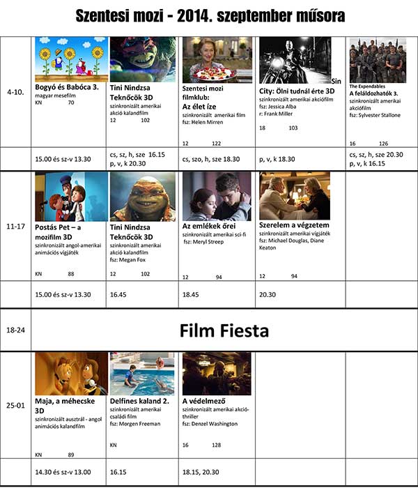 Bővebb információért keressék a Szentesi Mozi web- és Facebook-oldalát: www.szentesimozi.hu, www.facebook.com/szentesimozi