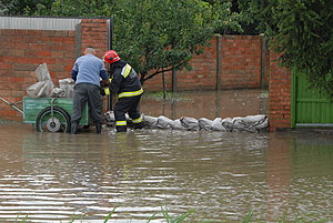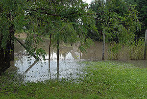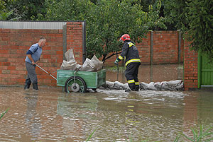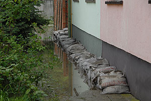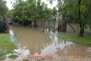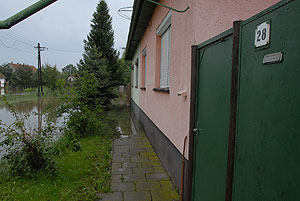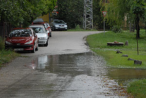 A Szeder Imre utca végén a Korsós sori részen már homokzsákokkal kellett beavatkozni a szakembereknek. Szabályosan úszik az egész Felsőpárt. Csaknem 80 mm eső esett le egy nap leforgása alatt, melyet lehetetlen levezetni még tiszta esővíz-elvezető árkok esetében is. Pláne ha egy-egy áteresz el is van dugulva.